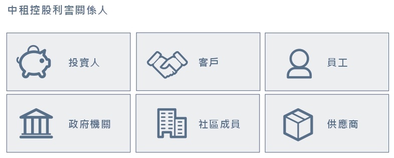為有效辨識關鍵利害關係人,中租控股參考標竿企業、產業經驗,經由各部門窗口組成的esg小組成員的討論,依循aa 1000利害關係人參與標準,針對不同利害關係人對中租控股的依賴性、責任、影響力、多元觀點、張力等五個面向進行評估。