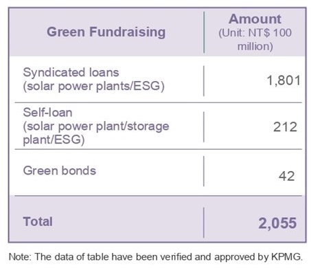 chailease holding cooperates with banks to provide funds into green financing. the fundraising projects include green bond, syndicated loans. the cumulative amount exceeds nt$205.5 billion. the funds raised are used for renewable energy and green energy related projects to accelerate the development of solar power plants.