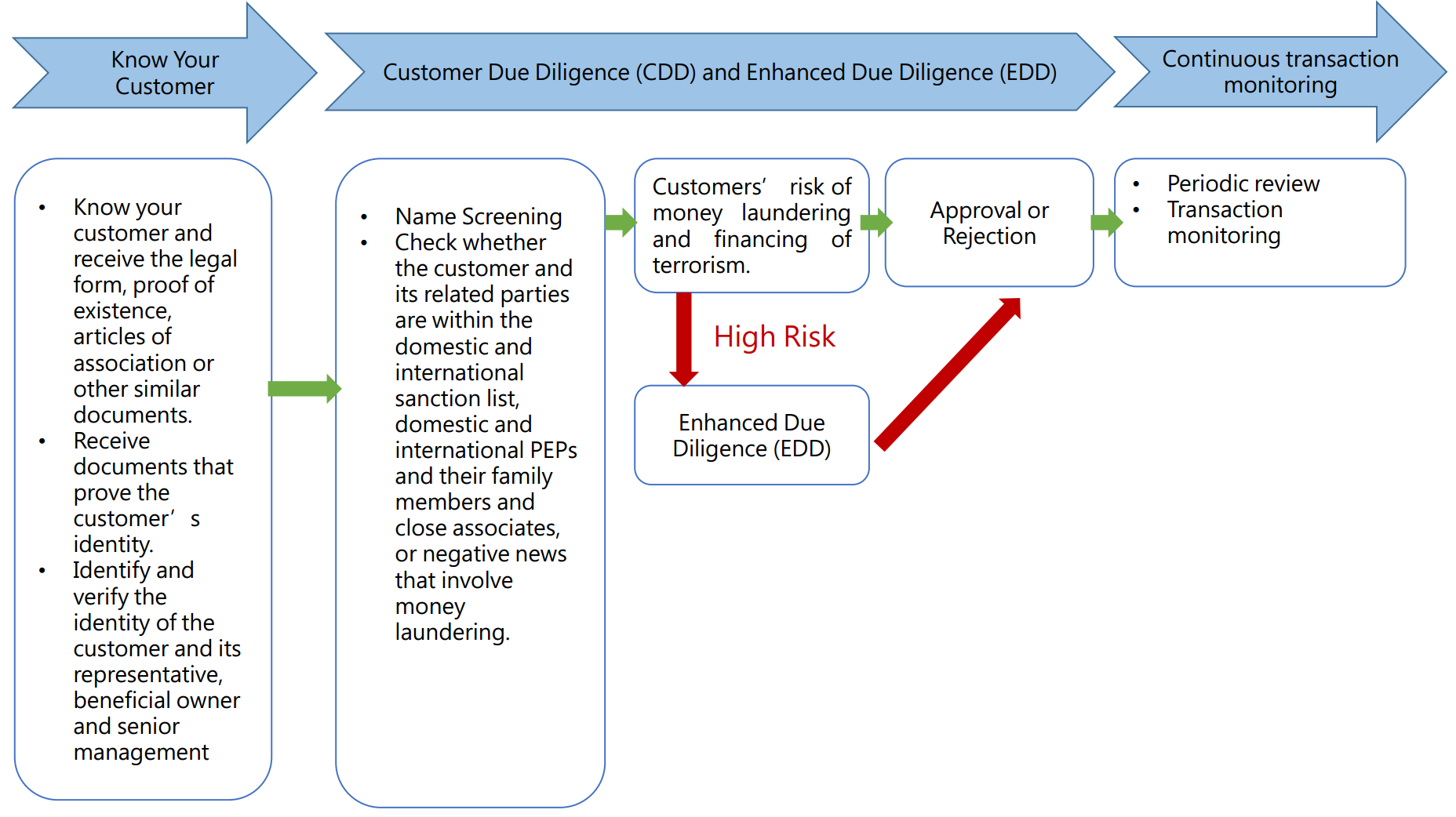 | december 2020 | on 7th december, 2020, the aml management system was officially launched, which was divided into three modules, including (1) aml watch list filtering, (2) customer due diligence and (3) aml suspicious activity monitoring. |