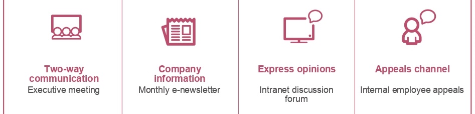 to solicit the opinions of all employees, taiwanese subsidiaries organized labor-management meetings in accordance with the "regulations for implementing labor-management meeting ", and 26 labor-management meetings have been held in 2024. furthermore, we provide a variety of communication channels such as a staff discussion area on the company platform and senior executive forums where employees can discuss business operations, working conditions, and employee benefits. although the company’s employee welfare committee is not a labor union, the committee will not interfere with or violate employees’ mutually agreed upon freedom of association. the committee also oversees employee benefits and consists of all departments, which elect labor representatives to participate in regular meetings. the purpose of the meetings is to take the needs of all employees into consideration and promote harmonious labor relations.